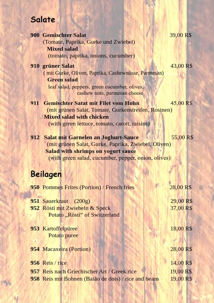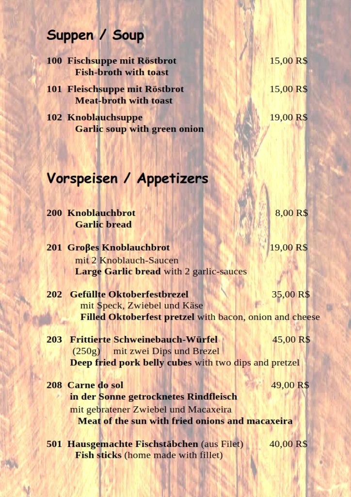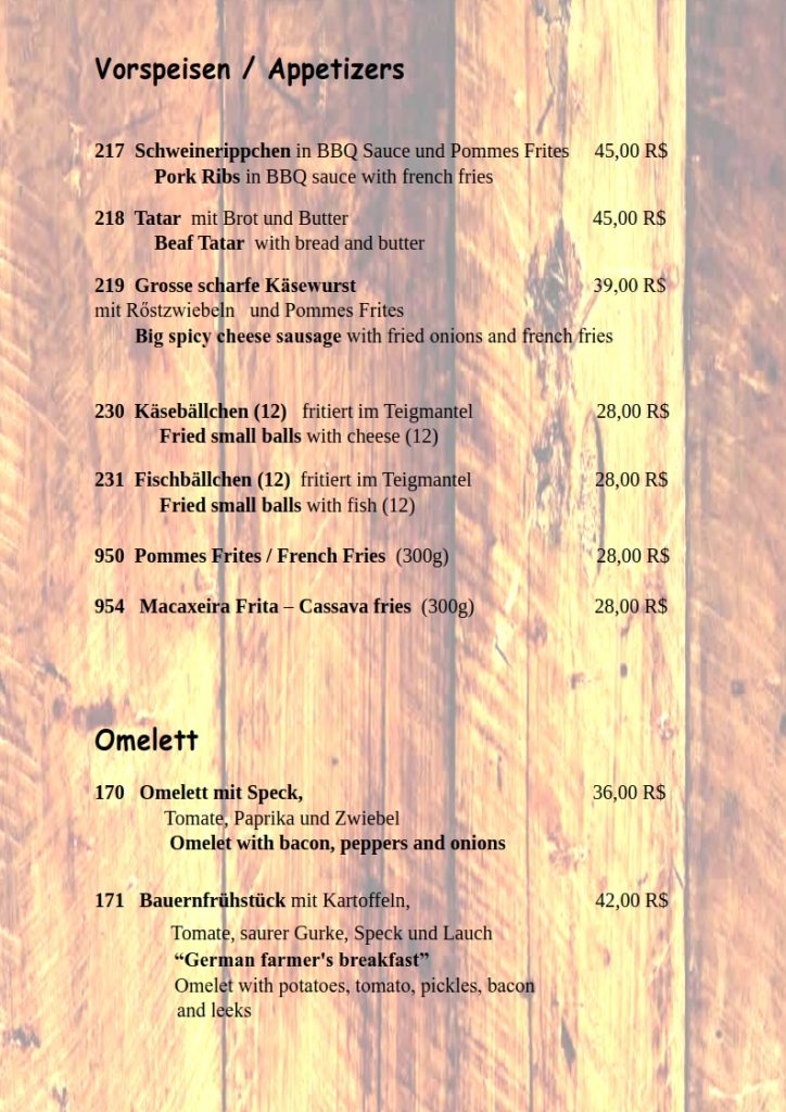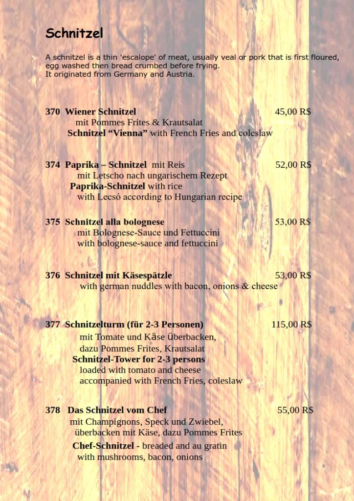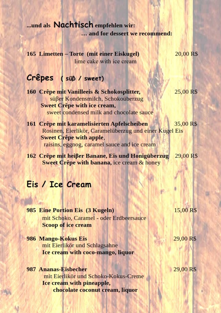 Menü Start Home Speisekarte Speisekarte/Menu Aktuelles und Events Info’s & Kontakt Speisekarte (deutsch) / Menu (english) Unser Bier / Wein Suppen / Vorspeisen Crêpes, Sandwich, Currywurst, Spaghetti, Huhn, Deutsche Küche Vom Rind Meeresfrüchte Spanferkel Beilagen,Salate und Nachtisch nach oben nach oben nach oben nach oben Lust auf lecker Spanferkel ?Sie können bei uns für Gruppen ab 10 Personen ein Ferkel entsprechender Gröβe vorbestellen ! Dieses Angebot gilt nur für das Abendessen ! Wir servieren es komplett mit einem reichlichen Angebot an typischen Beilagen Ihrer Wahl am Tisch.Termin und Preis (entsprechend der Gröβe und der Beilagen) sprechen Sie bitte mit uns ab. nach oben